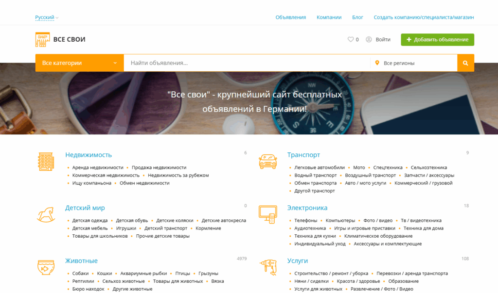 4. Vse-svoi.de: доска бесплатных объявлений «Для русскоязычных в Германии»